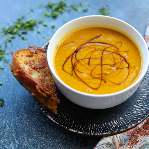 A homestyle favorite reimagined… we start with cream of tomato soup, add our sweet and smoky harissa and finish with sumac, seseame seeds, thyme an...