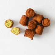 Our falafel is a golden-crusted masterpiece - a celebration of tradition and taste that has won the hearts of our customers since day one. Chickpeas, fava beans, fresh herbs and Middle Eastern spices meld together in crispy exterior shell with a moist, soft center.